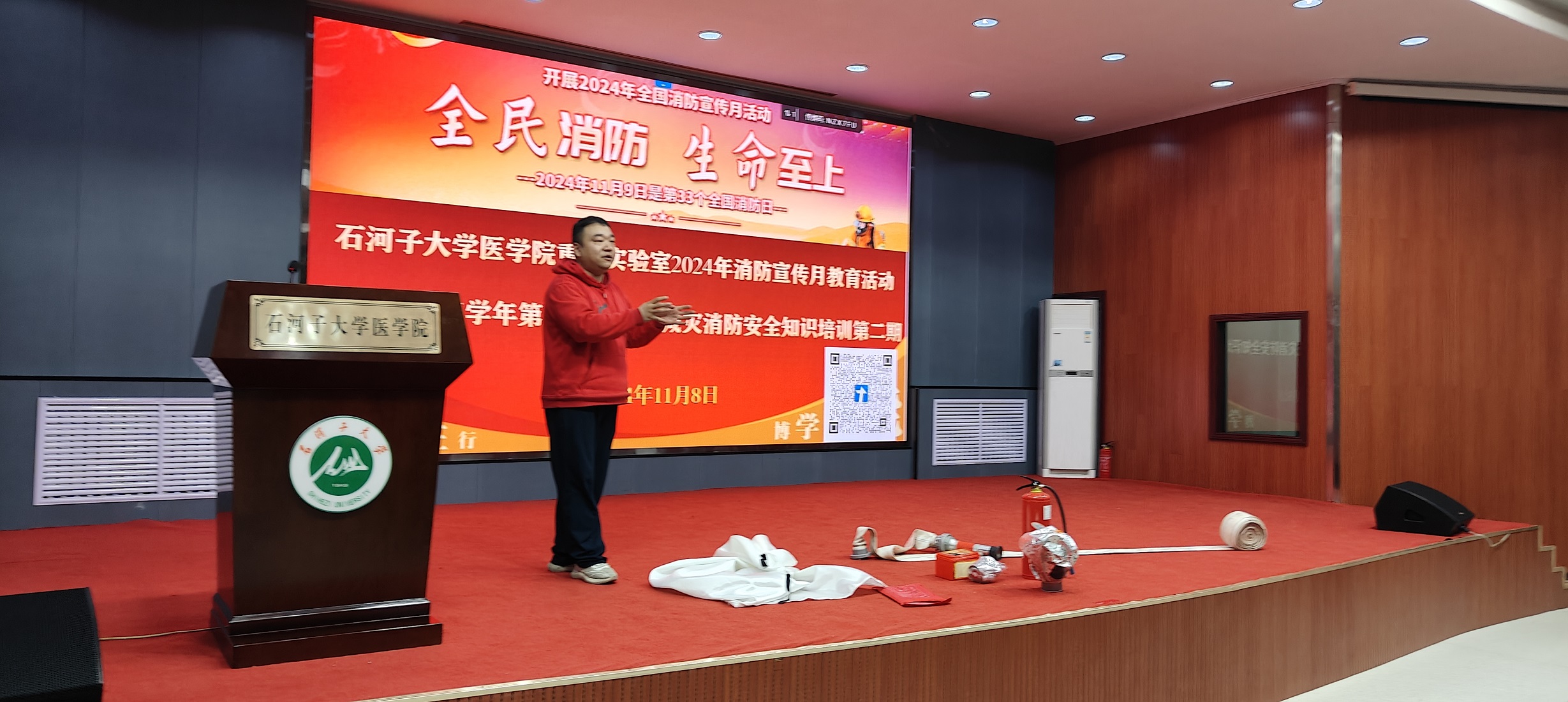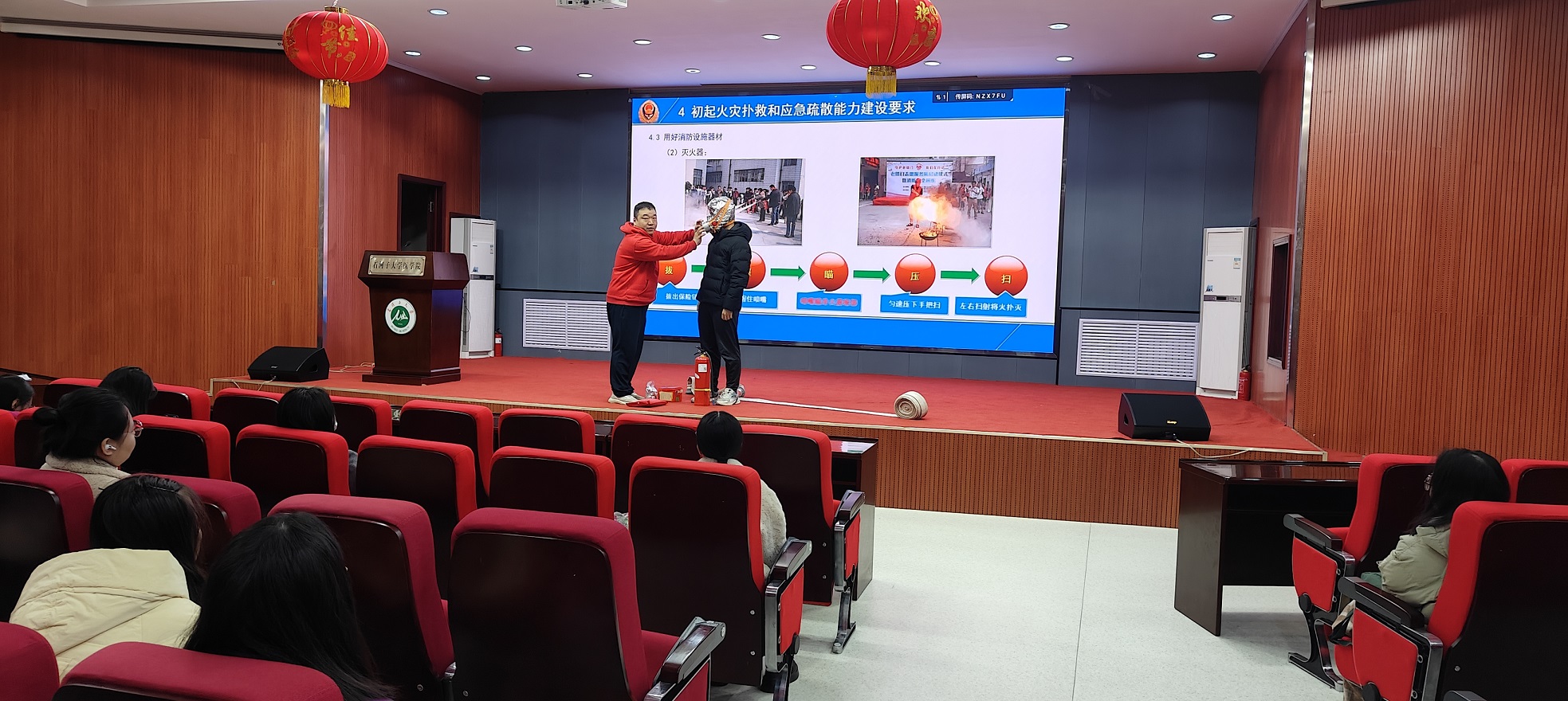 11月8日上午12时,重点实验室联合保卫部消防科开展消防宣传月主题教育活动暨2024-2025学年第一学期防灾减灾消防安全知识系列培训第二讲。培训会围绕主题“全民消防、生命至上”,建立“人人有责、层层负责、各负其责”的全员安全责任体系。140余名师生代表参加了消防宣传月主题安全教育活动培训会。