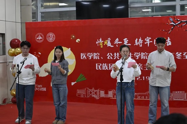 随后,精彩纷呈的暖场活动开始上演。“有奖竞答”环节围绕冬至民俗、民族团结知识展开,师生们积极抢答,踊跃参与;“击鼓传花”环节充满趣味,接到花的师生纷纷表达对公司的祝福。